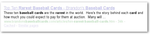 如果内容片段里有用户查询的关键è¯åˆ™ä¼šä»¥ç²—体å—高亮显示。这给用户判æ–ä½ çš„ç½‘é¡µæ˜¯å¦æ˜¯ä»–è¦æ‰¾çš„æä¾›çº¿ç´¢ã€‚䏋颿˜¯å¦ä¸€ä¸ªä¾‹å,这一次从一个本身就包å«äº†ä¸€ç¯‡æ–‡ç« 的更深层次网页的description metaæ ‡ç¾é‡Œæå–æœç´¢ç»“果内容片段。